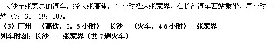 (2)广州—(高铁,2小时)—长沙—(汽车,4小时)—张家界