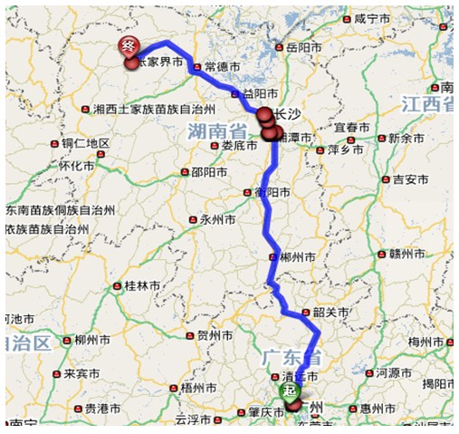 广东广州至张家界